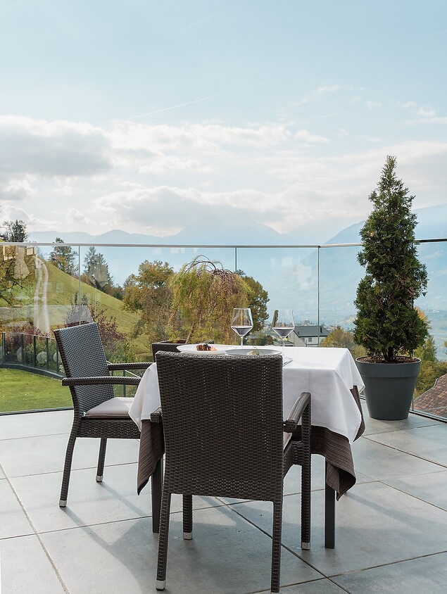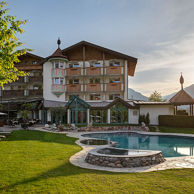 Eine grüne Oase in der Kurstadt: Im Stadtteil Obermais gelegen, genießen Sie hier die Ruhe zwischen Apfelplantagen und Weinbergen fernab von Straßenlärm und gelangen trotzdem schnell ins Zentrum von Meran. Das Hotel besticht durch stilvolle Zimmer, ein Erlebnishallenbad, ein Freibad im Panoramagarten, verschiedene Saunen und eine erstklassige Südtiroler Genussküche.