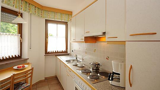 Apartment on the first floor, two balconies, two bedrooms, kitchen (fully equipped), living room with dining table and sofa, bathroom with shower/WC.