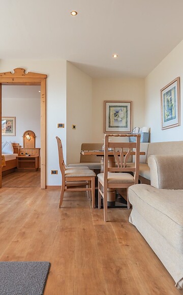 2 comfort double rooms, living room, newly renovated bathroom, shower, WC, washbasin, hairdryer, make-up mirror, fridge, radio, telephone, satellite TV, WiFi, safe, panoramic balcony, south-facing